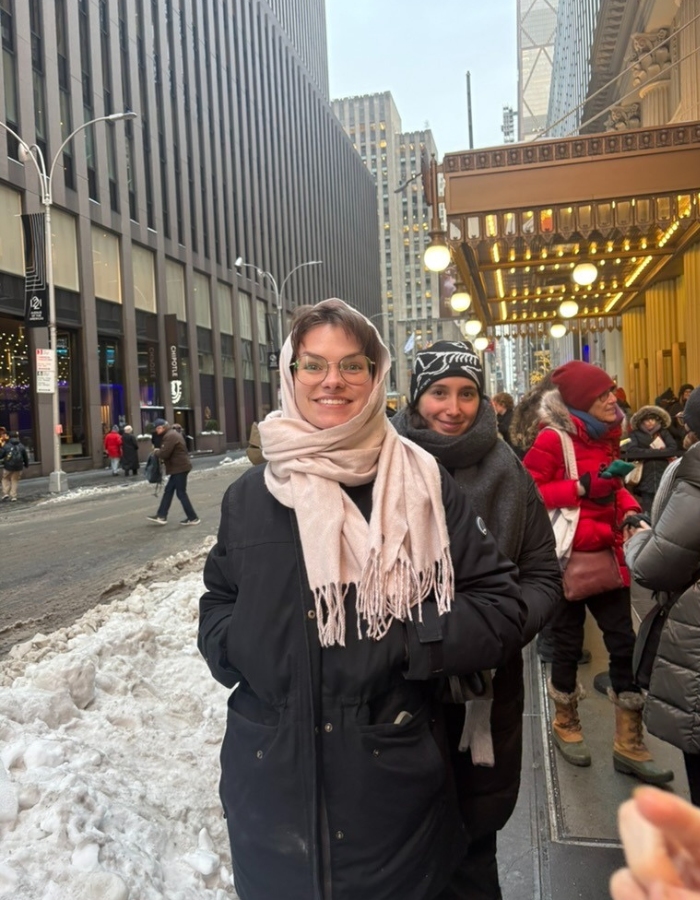 It was 19 degrees fahrenheit when the frigid but enthusiastic group of the inaugural Jean’s Salon gathered outside the James Earl Jones Theatre to see Liberation. But even the sub-freezing temperatures could not stop our energy and excitement! The group consisted of La Femme’s executive director Jean Lichty, two playwrights-in-residence Abigail Duclos and Tess Inderbitzen, Pendleton Directing Fellowship recipient Mikayla Gold Benson, and me: Molly Greenwold the La Femme Senior Fellow.